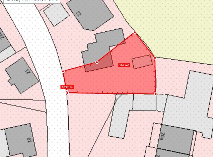 Das Grundstück muss noch vermessen werden, aus diesem Grund können sie derzeit bei der Grundstücksgröße noch