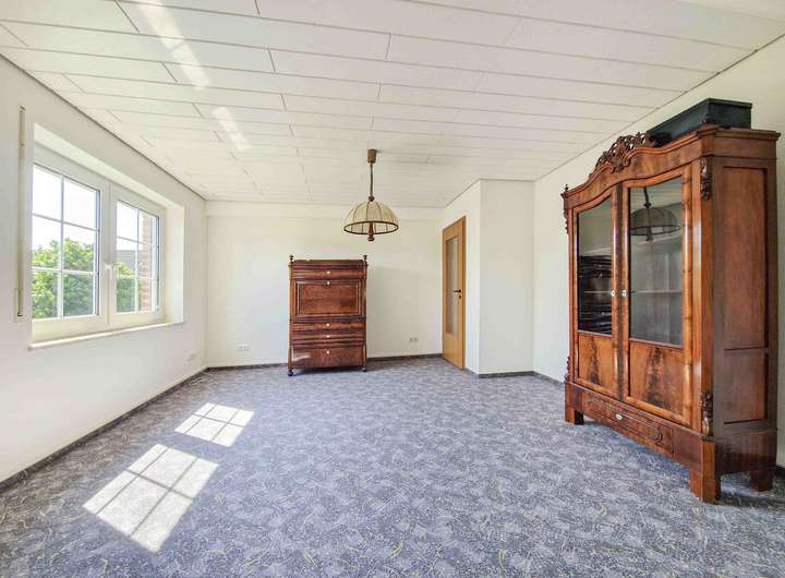 -Giebelzimmer mit vorbereiteten Wasser- und Abwasseranschlüssen – ideal für den Einbau einer kleinen Küche (Einliegerwohnung möglich)