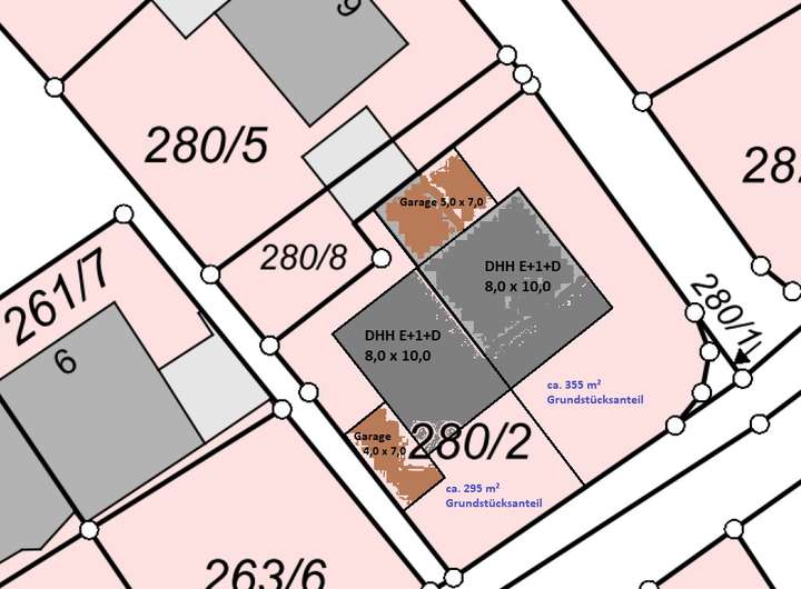 • Ca. 355 m² Grundstücksanteil bei Bau einer Doppelhaushälfte
