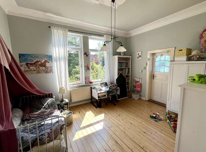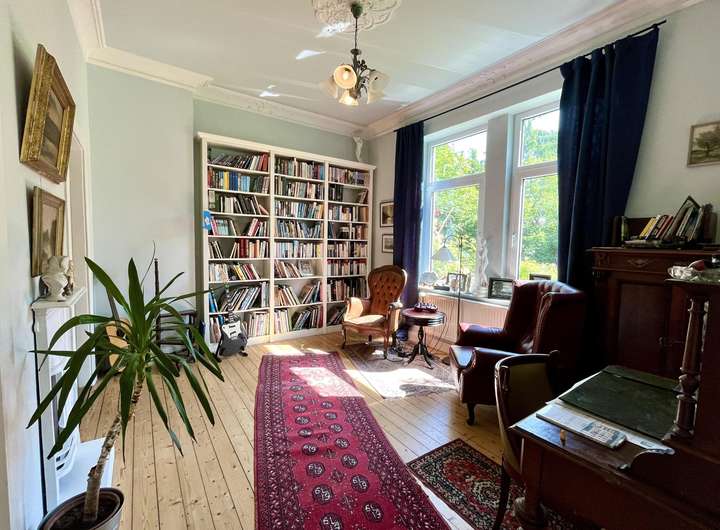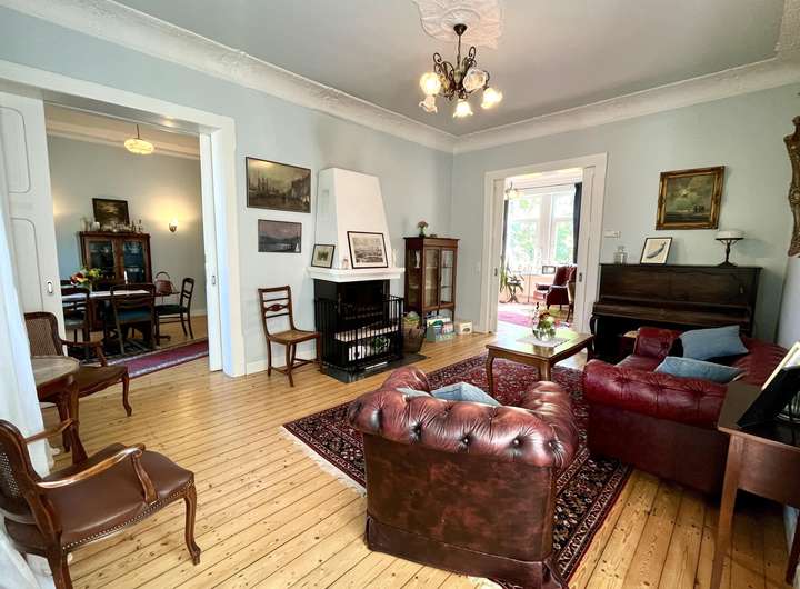 Wohnen in einer Stadtvilla hat einen ganz besonderen Charme. Dieser wird durch ansprechende Akzente wie den Dielenboden, Terrazzoboden, Stuckelementen und Fensterornamenten vermittelt. Zu diesen Akzenten gesellen sich modernisierte/ sanierte Bestandteile wie die Leitungssysteme, Heizung sowie Dachdämmung. Insgesamt verfügt dieses Domizil über ca. 200 m² Wohnfläche und erstreckt sich über das Erd-, Ober- und Dachgeschoss. Wobei das Dachgeschoss mit seiner offenen Balkenlage das größte Zimmer abbildet. Im Erdgeschoss befinden sich ein, per Schiebetür abtrennbares, Wohn- und Esszimmer, ein Büro mit Zugang zum Wintergarten, Küche und Gäste-WC. Ergänzend zum Erdgeschoss bietet das Obergeschoss 3 Schlafzimmer und 2 Badezimmer. Ein Schlafzimmer verfügt dabei über einen Balkon. Neben den ansprechenden Räumlichkeiten kann auch das Grundstück mit seinen knapp 980 m² überzeugen. Der kleine Rosengarten sowie der Teich schaffen verschiedene Bereiche und runden neben einigen Obstbäumen den heimischen Gesamteindruck ab.