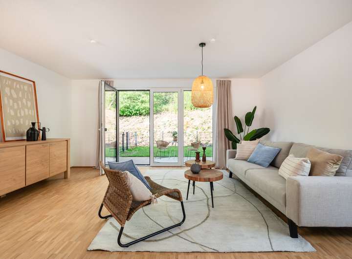 • Optimale Raumnutzung mit großen Fensterelementen für ein helles und einladendes Wohnambiente.