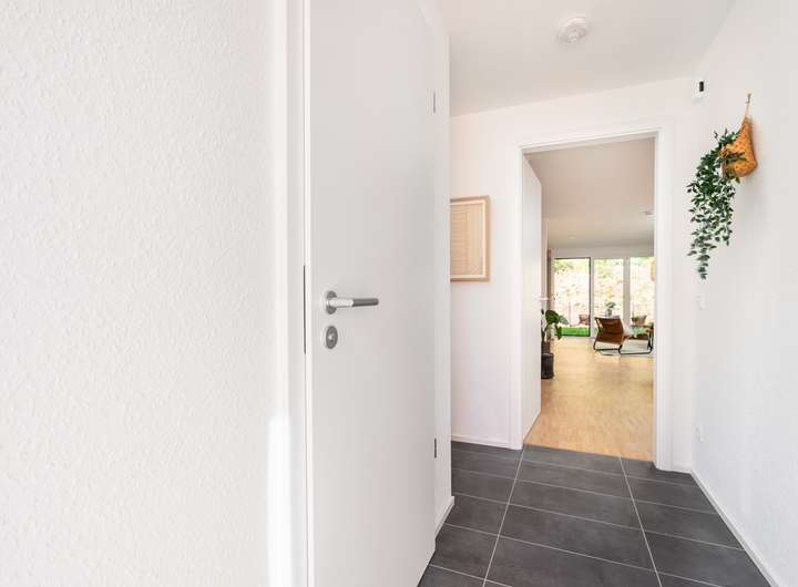 Die exklusiven Immobilien „Am Mühlbach“ bieten Ihnen ein modernes Wohnerlebnis auf höchstem Niveau. Hochwertiger Eichenparkettboden und eine angenehme Fußbodenheizung sorgen für ein behagliches Wohnklima. Die teils vorhandenen Einbauküchen fügen sich harmonisch in das moderne Raumkonzept mit flexiblen Gestaltungsmöglichkeiten ein. Große Fenster mit elektrischen Rollläden durchfluten die Räume mit Licht und bieten gleichzeitig Sicherheit sowie Komfort. Vor der Haustür wartet Ihr persönlicher Parkplatz und die Sichtschutzwände bewahren auf den großzügigen Terrassen und Gärten Ihre Privatsphäre – perfekt für Kinder und eine entspannte Familienzeit. Zusätzlich profitieren Sie von der quartierseigenen Heizungsanlage und den Photovoltaikanlagen, die Ihnen eine nachhaltige und kosteneffiziente Energieversorgung sichern.
