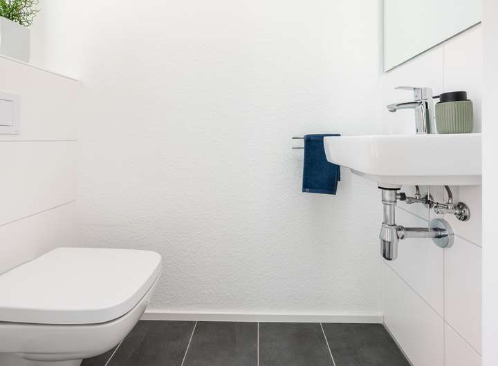 • Komfortable Badausstattung: Die bodengleiche geflieste Dusche mit Echtglastrennwänden und Spiegel in allen Bädern sowie eine moderne Sanitärausstattung und einem Doppelwaschtisch im Hauptbad bieten höchsten Komfort und Funktionalität.