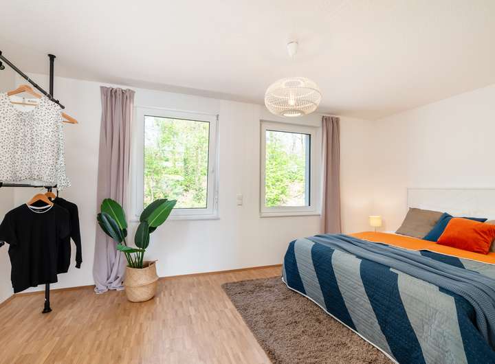 • Optimale Raumnutzung mit großen Fensterelementen für ein helles und einladendes Wohnambiente.
