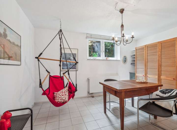 Der massive Vollkeller bietet zusätzlich ca. 65 m² ausgebaute Nutzfläche: drei vielseitige