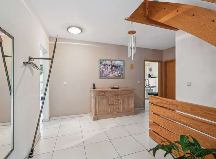 Dieses gepflegte Einfamilienhaus aus dem Jahr 1994 bietet etwa 128 m² Wohnfläche und zusätzlich rund 65 m² ausgebaute Nutzfläche im massiv errichteten Vollkeller. Das großzügige und liebevoll angelegte Gartengrundstück umfasst insgesamt 449 m². Eine Grundschule und ein Kindergarten befinden sich in unmittelbarer Nähe, ebenso ist der Bahnhof schnell erreichbar. Dadurch eignet sich die Lage besonders gut für Familien.
