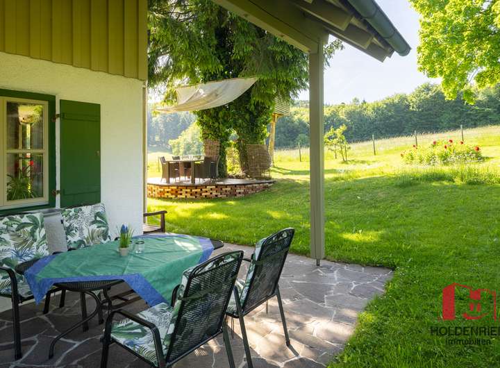 Ein besonderes Highlight ist der märchenhafte Blick über eine naturbelassene Wiese, der bis zum Waldrand reicht. Dieser Anblick lässt Sie und Ihre Besucher in einen fast schon spirituellen Traum verfallen. Hier findet wahre Entschleunigung statt!