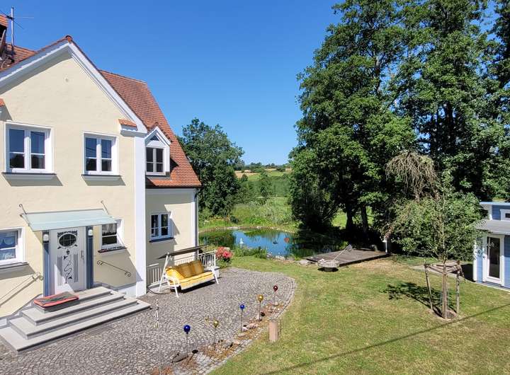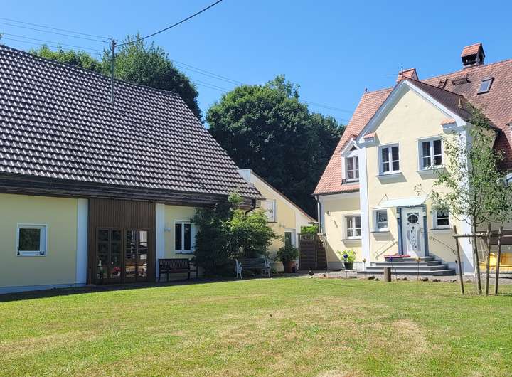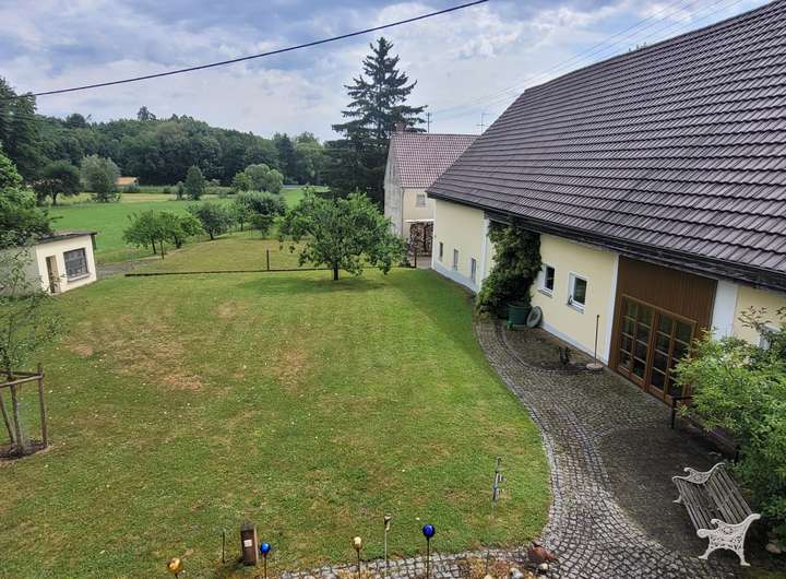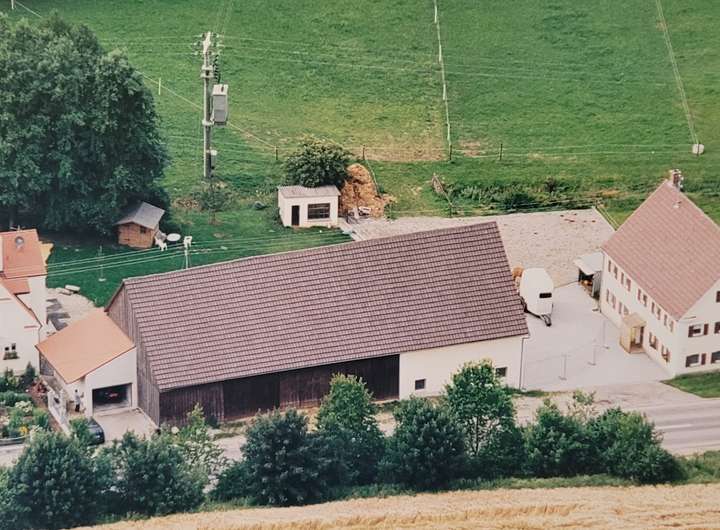 Ehemalige Hofstelle, Ortsrandlage, ca. 20 km nordwestlich von Augsburg, 2,2 ha Grund plus neuem Wohnhaus Bj. 1994, 175 m² Wohnfläche in gehobener Ausstattung: Kachelofen, FBH, Brauchwasserwärmepumpe, Ölheizung.