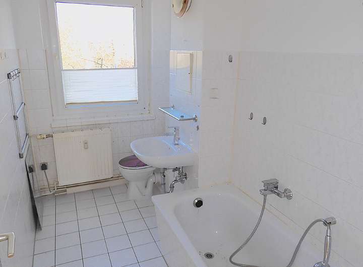 Das Objekt verfügt über 14 Wohneinheiten. Das Mehrfamilienhaus wurde 1983 im Mauerwerksbau errichtet und 1999 einer Komplettsanierung unterzogen. Bei der Komplettsanierung erfolgte die Installation einer neuen Zentralheizung, Fassadendämmung und Anstrich, alle Fenster und die Haustüren neu, alle Flächen mit Estrich neu verlegt, Böden teils gefliest, Teppich oder Laminat verlegt, alle Bäder neu installiert und gefliest (mit Wanne oder Dusche), alle Heizungs-, Wasser- und Abwasserleitungen neu und Freisprecheinrichtung erneuert. Die Bäder sind mit Wanne bzw. Dusche ausgestattet. Den Mietern stehen Kellerräume und Abstellräume zur Verfügung. Auf dem großen Grundstück hinter dem Haus befinden sich Pkw-Stellplätze, Garagen und Mietergärten. Die angebotene Wohnung befindet sich im 2. Obergeschoss des Hauses und umfasst drei Zimmer, ein Badezimmer mit Fenster und Badewanne und eine Küche mit Einbauküche und Fenster.