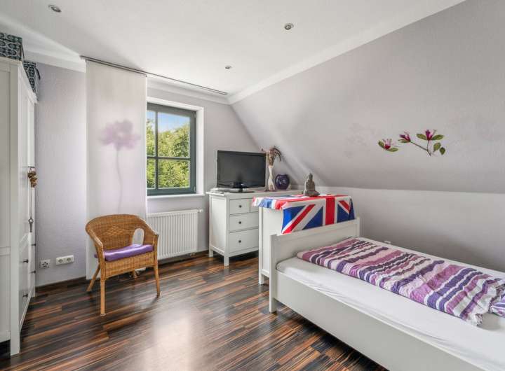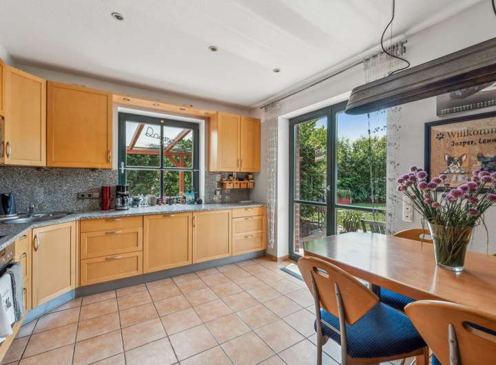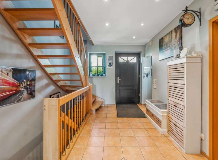 Willkommen in Ihrem zukünftigen Zuhause – einem Ort, an dem das Herz der Familie schlägt und an dem jedes Familienmitglied seinen ganz eigenen Lieblingsplatz findet. Dieses charmante Einfamilienhaus mit separater Einliegerwohnung wurde ca. im Jahr 2000 in massiver Bauweise errichtet und überzeugt nicht nur durch seine großzügige Wohnfläche von ca. 200 Quadratmetern, sondern auch durch die liebevolle Gestaltung und die zahlreichen Nutzungsmöglichkeiten, die es bietet. Bereits beim Betreten des Grundstücks spürt man die besondere Atmosphäre dieses Hauses. In idyllischer Hinterbebauung gelegen und weit entfernt vom Straßenlärm, erwartet Sie hier ein Refugium der Ruhe und Geborgenheit. Das Herzstück des Hauses bildet der helle, lichtdurchflutete Wohnbereich, dessen bodentiefe Fenster einen traumhaften Blick in den liebevoll gepflegten Garten eröffnen. Ein stilvoller Kamin sorgt hier für wohlige Wärme und eine behagliche Stimmung an kühlen Tagen. Direkt an das Wohnzimmer schließt sich eine großzügige Terrasse an – der perfekte Ort für entspannte Stunden im Freien oder fröhliche Familienfeste unter freiem Himmel. Drei modern gestaltete Badezimmer verteilen sich harmonisch auf die Etagen und sorgen dafür, dass morgens niemand anstehen muss. Die untere Etage ist barrierefrei gestaltet – ideal für mehrere Generationen unter einem Dach oder für Menschen mit eingeschränkter Mobilität. Das Haus ist vollständig unterkellert und bietet neben großzügigen Nutzflächen auch beheizte Wohnräume mit Tageslichtfenstern als Einliegerwohnung mit separatem Eingang. Dies eröffnet vielfältige Möglichkeiten: ob als großzügiger Raum für Großeltern, zur Vermietung oder als ruhiger Arbeitsplatz – hier lässt sich Wohnen ganz individuell gestalten. Das ca. 780 Quadratmeter große Grundstück ist ein Paradies für Naturliebhaber und kleine Entdecker. Ein hübsches Gartenhäuschen bietet zusätzlichen Stauraum oder kann als gemütliches Spielhaus genutzt werden. Für Hobbygärtner und Genießer wurde der Garten mit viel Liebe zum Detail gepflegt – hier blüht nicht nur die Natur, sondern auch das Familienleben auf. Ein eigener Brunnen sorgt für nachhaltige Gartenbewässerung, während eine Videoüberwachung zusätzliche Sicherheit schenkt. Die große, geschwungene Treppe im Hausinneren führt elegant ins Obergeschoss und verleiht dem gesamten Wohnraum ein stilvolles Ambiente. Dank der zahlreichen großen Fenster erstrahlt das gesamte Haus im Tageslicht und schafft eine freundliche, warme Wohnatmosphäre, in der man sich sofort zu Hause fühlt.