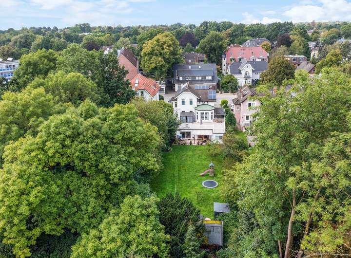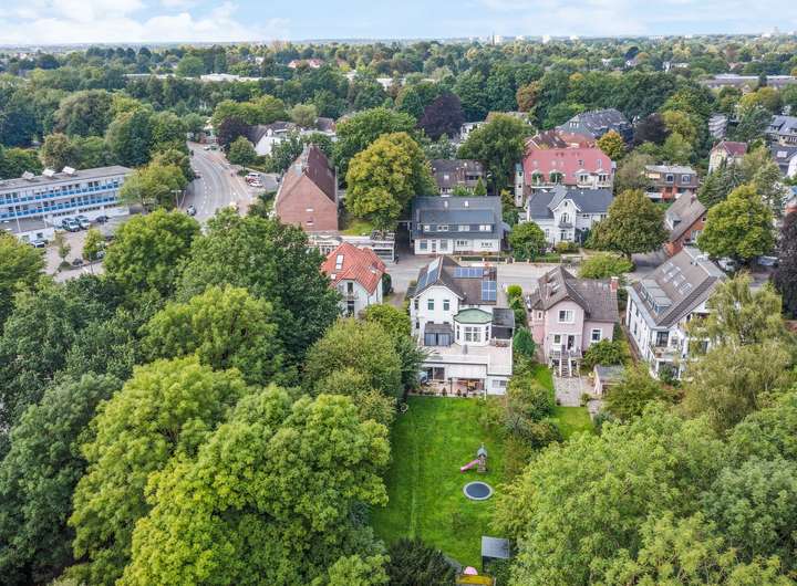 Die Villa liegt in äußerst zentraler Lage im Herzen von Rahlstedt, direkt angrenzend an den beliebten Liliencronpark. Dieser idyllische Park lädt zu entspannenden Spaziergängen ein und beherbergt die malerische Wandse sowie den Liliencronteich. Der charmante Stadtteil im Nordosten der Hansestadt Hamburg bietet seinen rund 90.000 Einwohnern eine hervorragende Lebensqualität und überzeugt mit seiner exzellenten Infrastruktur.