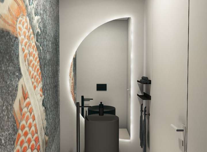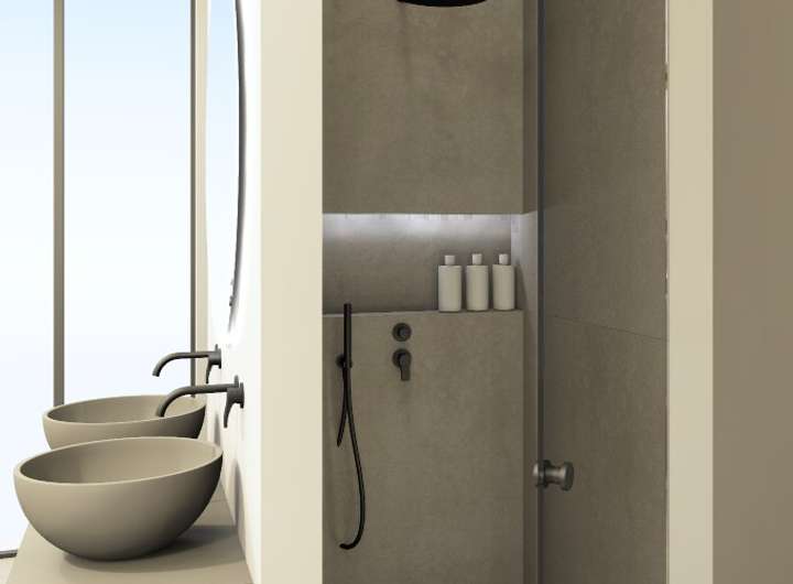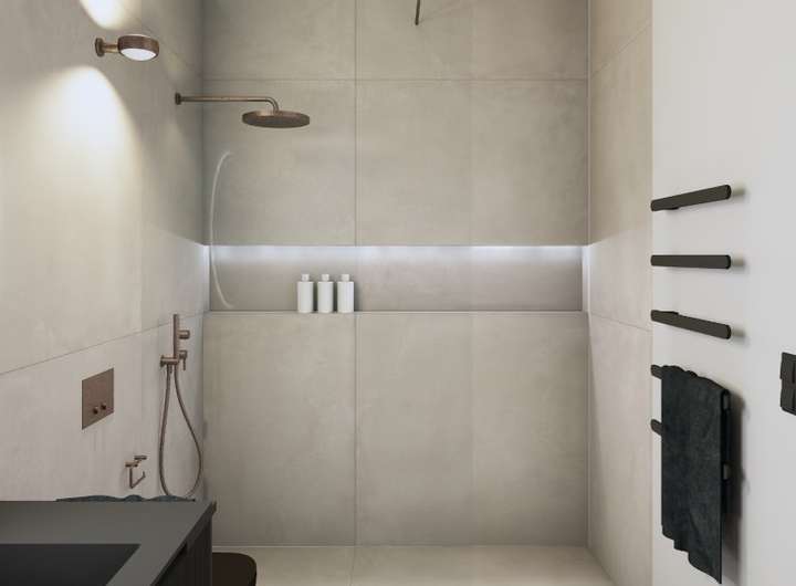 • Ästhetische Bäder mit großen Fliesen (100x100cm), hochwertigen, ausgefallenen Armaturen, Walk-In Dusche bzw. auf Wunsch Solitär-Badewanne und Trennwänden in Glas, Ausstattung von Grohe, Duravit, Laufen etc.