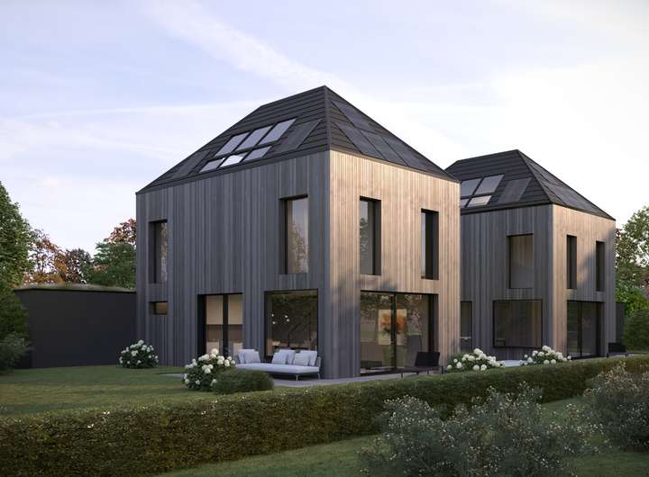 Die beiden Häuser zeichnen sich durch ihre klare Formensprache, große Fensterflächen und eine lichtdurchflutete Raumstruktur aus. Die bewohnbare Fläche von ca. 120 bis 150 m² verteilt sich über drei Ebenen (EG, OG, DG) und bietet Raum für moderne Wohnansprüche mit Rückzug und Offenheit zugleich. Das UG bietet viel Raum für Meditation, Fitness oder Wellness.