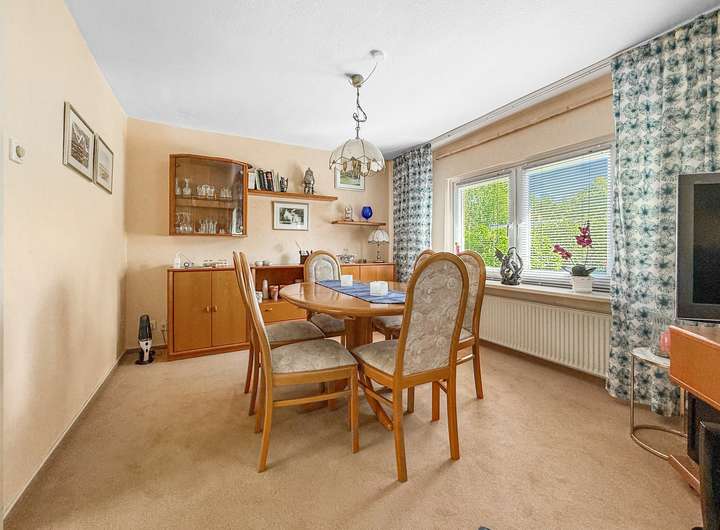 Das Grundstück ist ruhig gelegen, rückwärtig eingebettet in ein grünes, gepflegtes Wohnumfeld ohne Durchgangsverkehr. Die Form als Pfeifenstil-Grundstück garantiert maximale Privatsphäre – ein seltenes Gut in dieser gefragten Region.