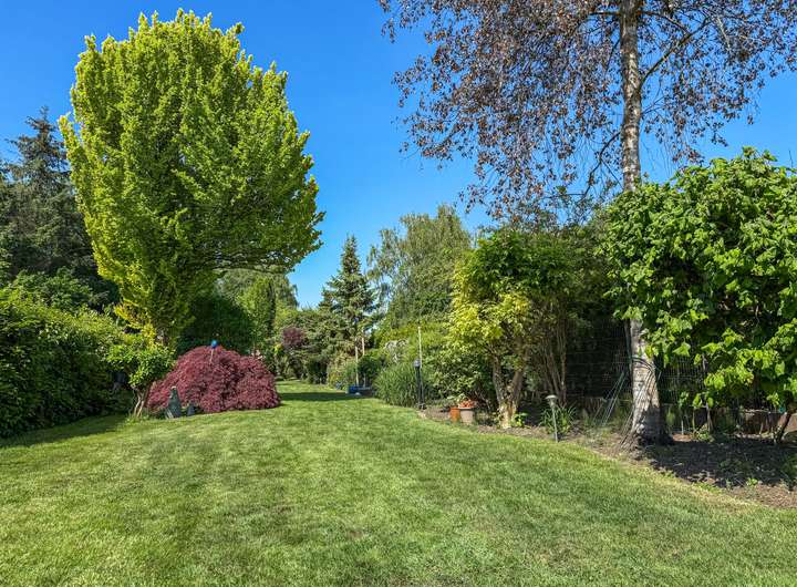 Und dann ist da noch der Garten – das Herzstück dieser Immobilie. Hier wurde über viele Jahre mit großer Hingabe und viel Gespür für Atmosphäre eine grüne Oase geschaffen, die ihresgleichen sucht. Blühende Stauden, verwunschene Pfade, kleine Ruheinseln – alles ist mit großer Liebe zum Detail angelegt und perfekt gepflegt. Dieses Grundstück erzählt Geschichten, lädt ein zum Ankommen, Verweilen – und Träumen.