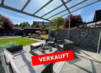 Der Wohnraum ist mit einer großzügigen Fensterfront im Wintergartenstil mit der vorgelagerten, überdachten Terrasse direkt verbunden, so dass das Wohnen „innen + außen“ bestens gestaltet ist.