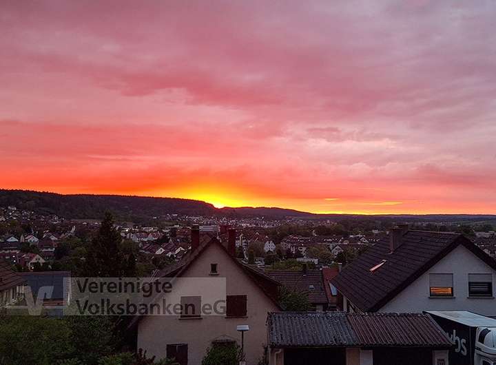 Vom Obergeschoss genießen Sie einen weiten Blick über die Stadt und das Würmtal – besonders eindrucksvoll bei Sonnenuntergängen auf dem Westbalkon.
