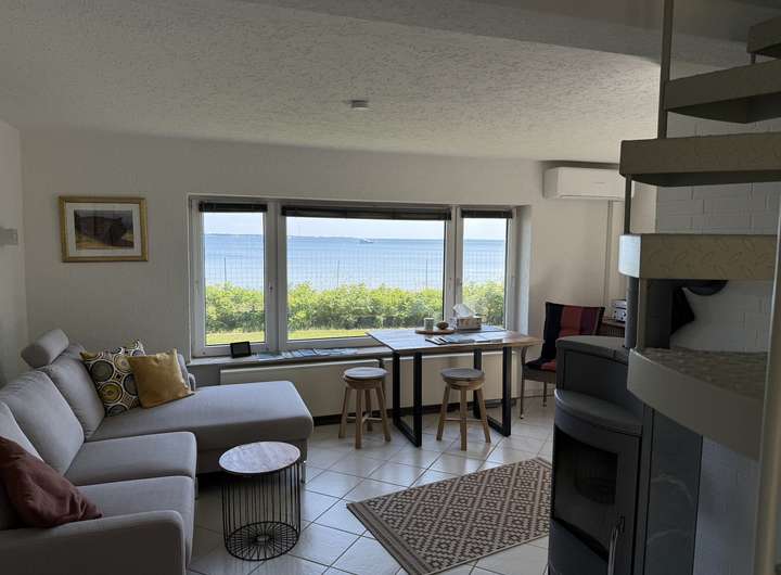 Das separate Strand-/ Gästehaus besitzt auf zwei Ebenen rund 50 qm Wohnfläche inkl. Küchenzeile und Duschbad und eine gepflasterte S/W-Terrasse. Der gemütliche Wohn-/ Essbereich mit Kaminofen aber auch das Schlafzimmer im Obergeschoss bieten einen wundervollen Meerblick und wenn man die Fenster öffnet, kann man das Rauschen der Wellen hören.