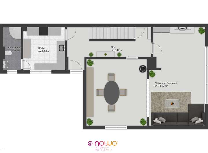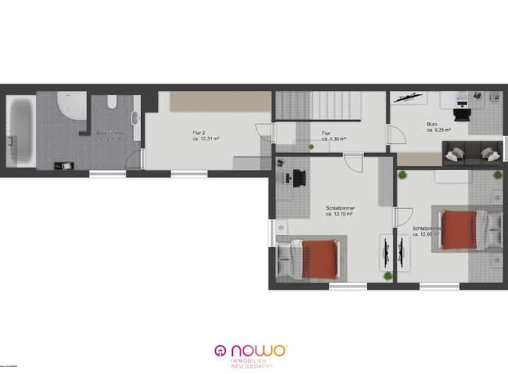 Bitte beachten Sie, dass es sich in den Grundrissen um Möblierungsvorschläge handelt. Die evtl. tatsächlich in der Immobilie befindliche Möblierung ist, sofern nicht anders erwähnt, nicht Bestandteil des Kaufangebotes.