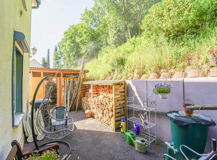 • Sonnige Terrasse mit direktem Gartenzugang