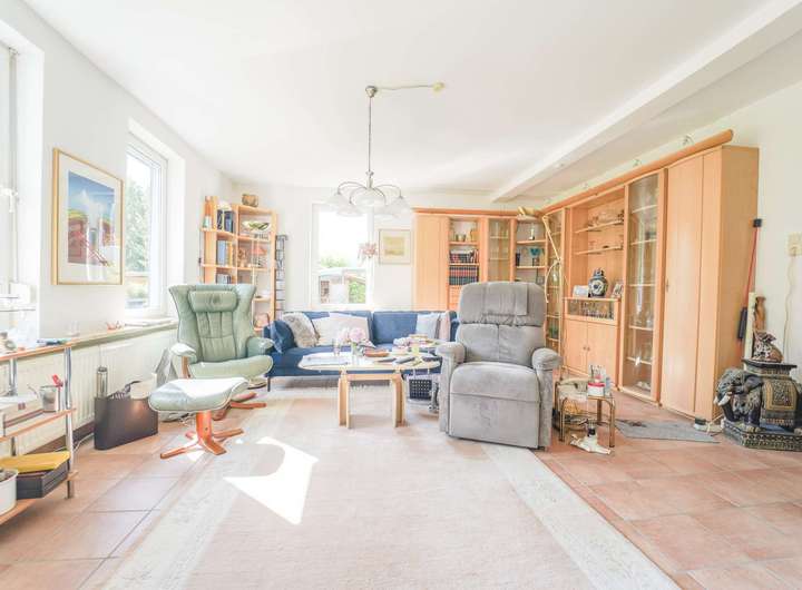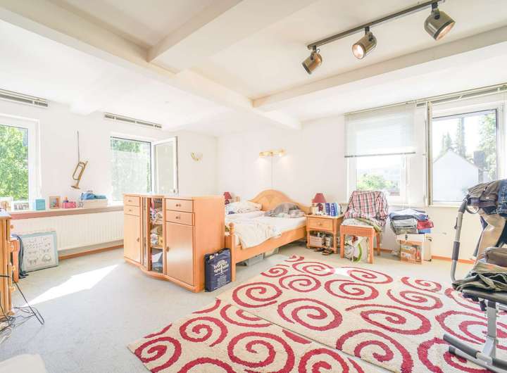 Bereits beim Betreten des Hauses wird deutlich: Hier wurde mit Weitblick geplant und mit Liebe zum Detail gepflegt. Sechs großzügige Zimmer, darunter vier stilvoll geschnittene Schlafzimmer, bieten ein Ambiente, das sowohl private Rückzugsorte als auch Raum für gesellschaftliches Leben schafft.