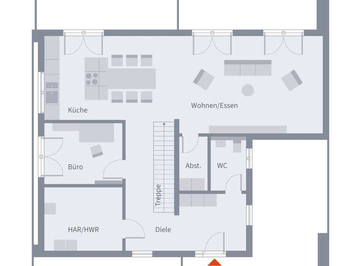 Unser Pult 28 besticht durch seine durchdachte Raumaufteilung und moderne Architektur, die ideal für Familien ist. Im Erdgeschoss erwartet Sie ein großzügiger und offener Wohn-Essbereich, der zum gemeinsamen Verweilen und Genießen einlädt. Hier können Sie mit Familie und Freunden gesellige Abende verbringen oder einfach den Alltag entspannt ausklingen lassen. Im Dachgeschoss befindet sich ein komfortables Elternschlafzimmer mit integriertem Badezimmer, welches höchsten Wohnkomfort und Privatsphäre bietet. Zwei geräumige Kinderzimmer bieten den jüngsten Familienmitgliedern genügend Platz zum Spielen und Lernen. Eine große Galerie lädt zum Entspannen und Träumen ein, sei es mit einem guten Buch oder einfach bei einem Blick in den Garten. Dieses Einfamilienhaus vereint Funktionalität und stilvolles Design und erfüllt alle Wünsche für modernes Wohnen.