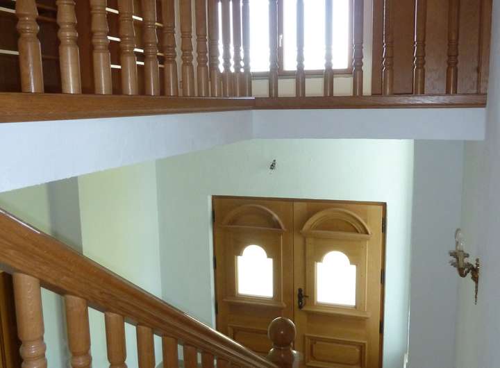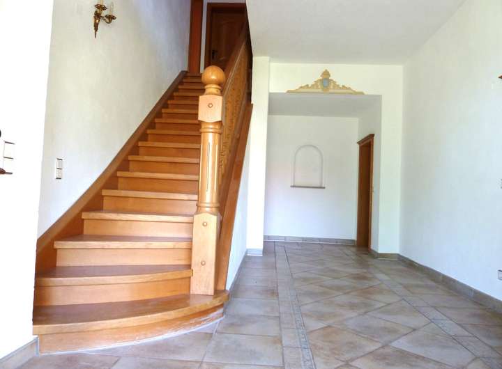( vom Empfangsbereich ist der Zugang zum OG über eine hochwertige, massive Vollholztreppe mit Sprossen gegeben)