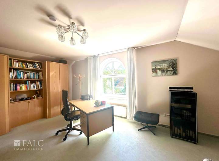 Ein weiterer Raum im Obergeschoss wird derzeit als Hausarbeits- und Abstellraum genutzt. Diesen können Sie nach Ihren Wünschen umgestalten, zum Beispiel zu einem weiteren Büro.