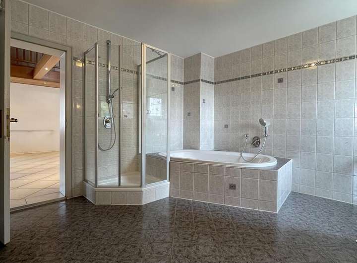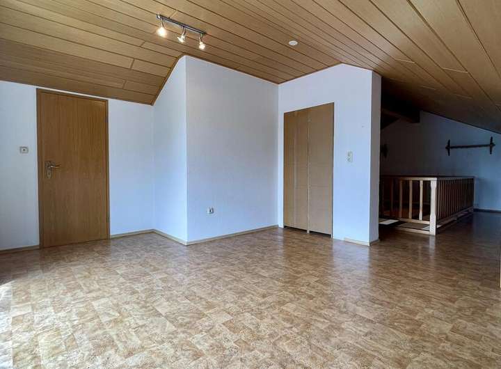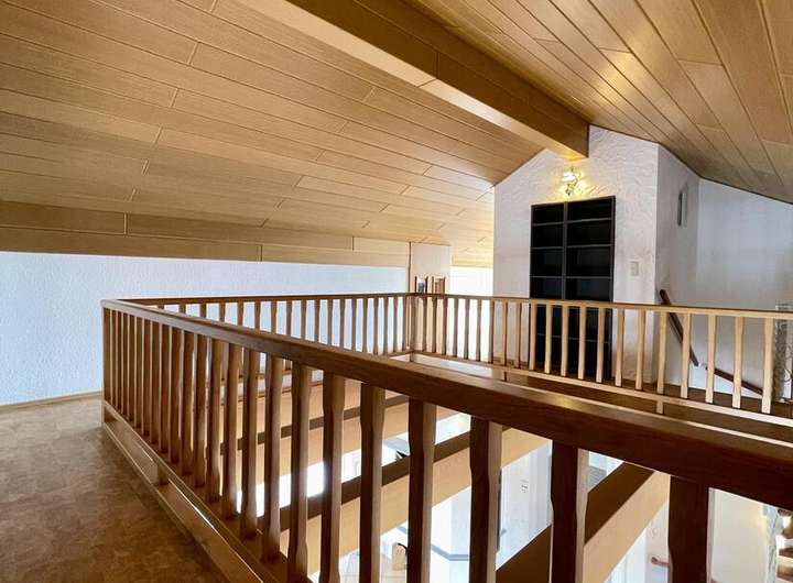 Die Immobilie erstreckt sich über drei Geschosse: Untergeschoss, Erdgeschoss und Dachgeschoss, das durch eine offene Galerie besonders charmant und hell gestaltet ist. Insgesamt stehen sechs großzügige Zimmer und zwei Bäder zur Verfügung, wodurch eine flexible Nutzung und genügend Platz für alle Bewohner gegeben ist.