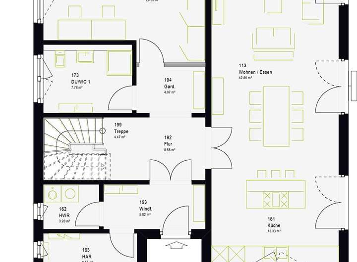 Eine Raumhöhe von 2,75 m und hohe bodentiefe Fenster schaffen eine freundliche Atmosphäre, und wenn Sie noch weitere Wünsche haben, passen wir den Grundriss, oder auch die Hausgröße Ihren Vorstellungen an. Auch ein Keller wäre möglich, um noch mehr Platz zu bekommen. Sprechen Sie mich hierzu gerne an.