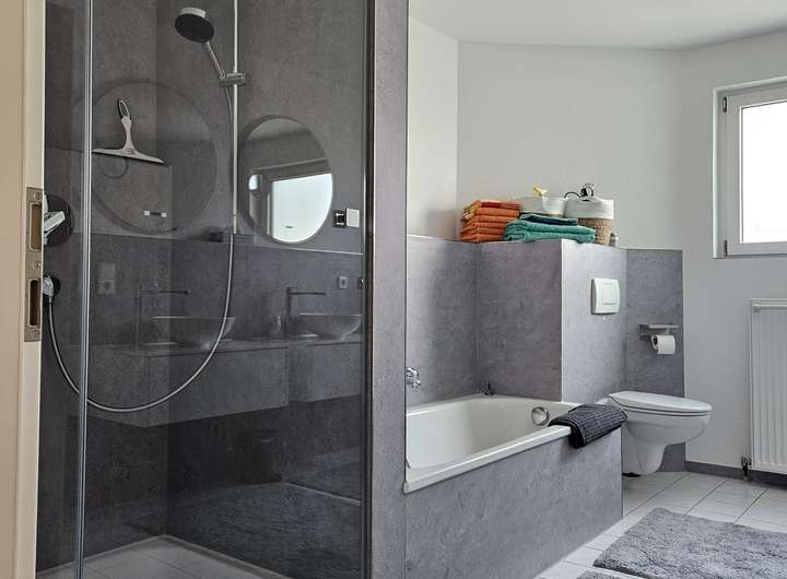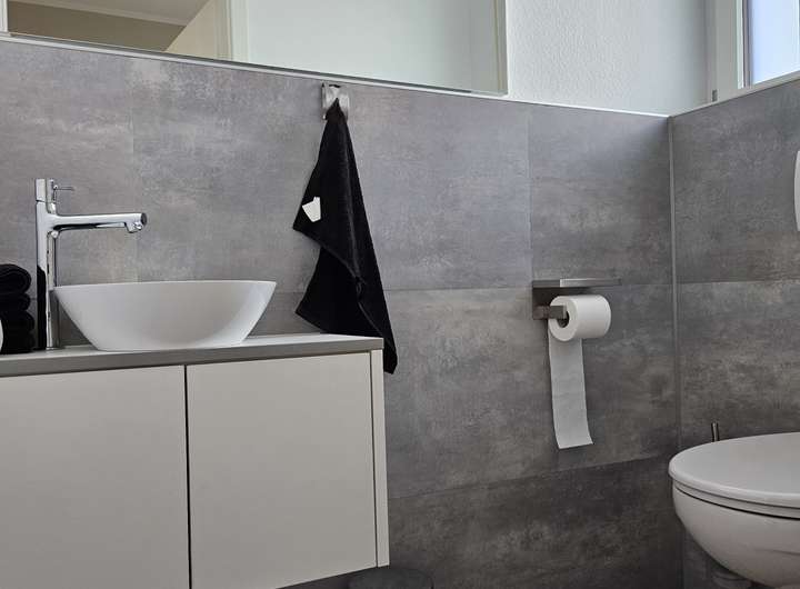 Ein topmodernisiertes, großzügiges Badezimmer steigert den Wohnkomfort.