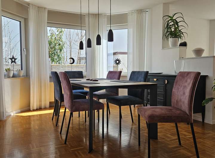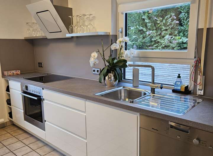 In dem hellen, angenehmen Wohn-/Essbereich (47qm) mit großen Fensterfronten fühlen Sie sich sofort wohl. Die komplett neue, hochwertig ausgestattete Einbauküche lädt zum Kochen ein. Von dem großzügigen Wohnbereich gelangen Sie auf die Terrasse . Rund um das Haus gibt es schöne Sitzecken zum Verweilen.
