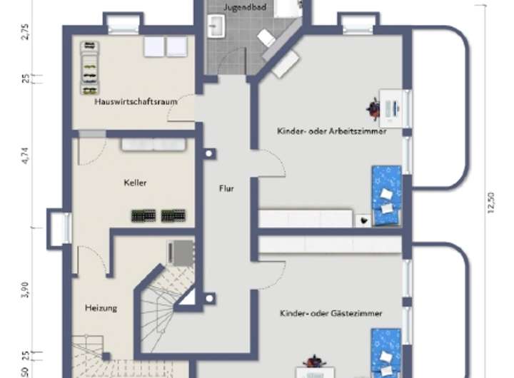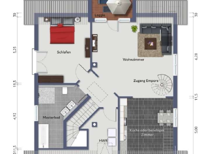 Das Obergeschoss wird durch den separierten Eingangsbereich...