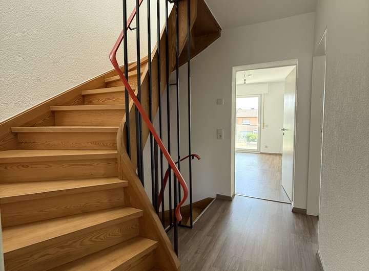 Bei dem zweistöckigen Reihenendhaus mit ausgebautem Dach handelt es sich um eine attraktive Immobilie, die durch eine gehobene Innenausstattung besticht und ab sofort bezogen werden kann. Neben fünf einladenden Zimmern zählen zwei Badezimmer sowie ein separates Gäste-WC zu der Immobilie. Viel Platz zum Gärtnern, Spielen oder Sonnenbaden. Auf den 300 Quadratmetern des dazugehörenden Grundstücks können Sie entspannen. Durch den Auto-Stellplatz, der sich direkt am Haus befindet, können Sie Ihre Wocheneinkäufe entspannt in die bereits vorhandene Einbauküche tragen. Dieser Stellplatz ist für das Laden von Elektroautos vorbereitet . Ebenfalls komfortabel ist der von der Straße aus zugängliche Kellerraum, der viel Stauraum für Ihr Hab und Gut bietet. Das Baujahr der Immobilie ist 1966. Das Haus ist aber von Grunde auf saniert worden und hat prinzipiell nur noch mit den Außenwänden etwas mit dem Haus von 1966 zu tun. Wasser, Heizung, elektrische Rollläden, Fenster, Elektrik und Cat7 EDV-Verkabelung in jedem Raum entsprechen dem neuesten Standard. Die monatliche Miete für die Immobilie mit Grundstück beträgt 2.300 Euro.