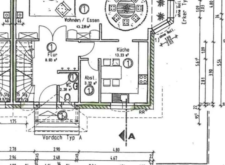 EG: gr. Wohn-/Essraum mit Terrasse, Küche, Abstellraum, Diele, WC