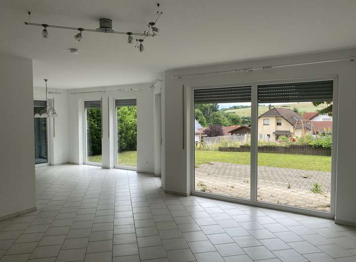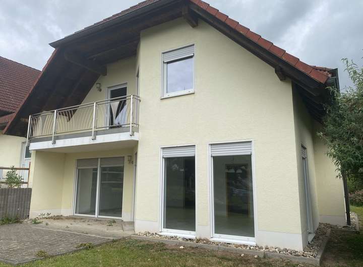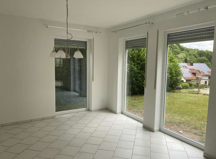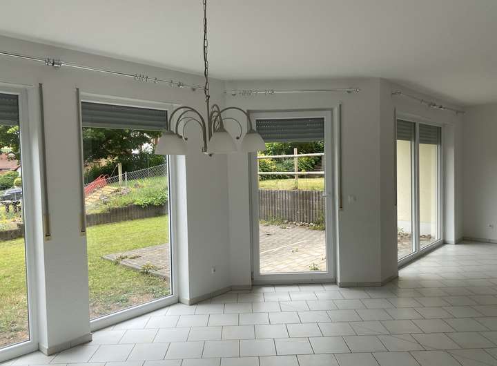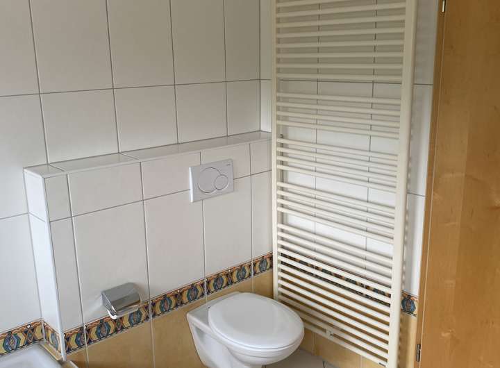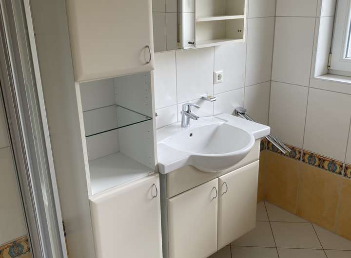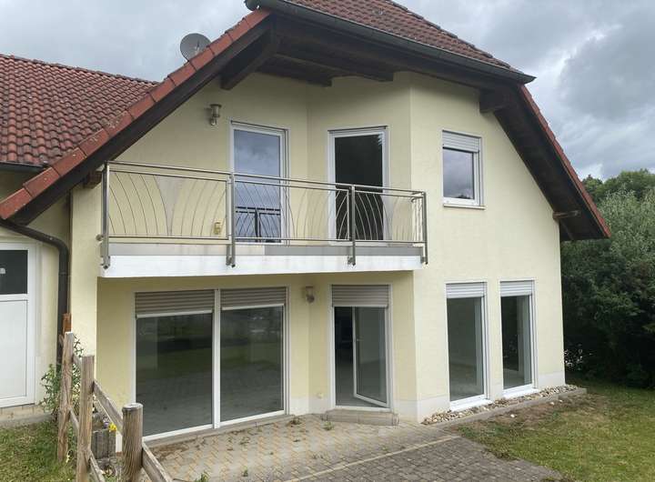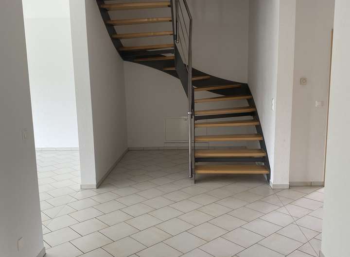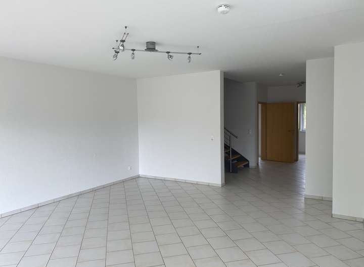 Nice equipment in good condition! Tiled floors (with floor heating on the first floor) and Laminate floors in the bedrooms (second floor), built-in-kitchen, 2 bathrooms, patio, balcony, garage.