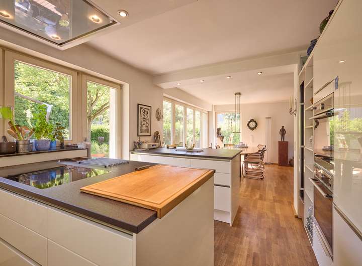 Dieses exklusive, modernisierte 3-Familienhaus bietet ein beeindruckendes Potenzial für Eigennutzer und Investoren. Errichtet wurde das Haus im Jahre 1968 und in 2004 aufgestockt. Die Wohnung im Erdgeschoss ist seit 2003 vermietet wurde im Jahr 2002 vollständig renoviert. Ebenso ist die Souterrain-Wohnung seit 2020 vermietet und diese wurde in 2017 modernisiert. Die Netto-Kaltmieteinnahmen für diese beiden Wohnungen belaufen sich auf ca. 25.200 € p.a. und gewährleisten kontinuierliche Einnahmen. Die Hauptwohnung wird zur Übergabe frei. Besonders hervorzuheben ist die erstklassige Lage im begehrten Paulusviertel, das eine harmonische Mischung aus urbaner Anbindung und ruhiger und grüner Umgebung offeriert. Die Hauptwohnung bietet große, helle Räumlichkeiten, die sich auf 2 Ebenen verteilen. Das Entrée empfängt Sie mit einem geräumigen Garderobenbereich mit praktischem Einbauschrank. Weiter geht es in den großzügigen Kochbereich mit moderner Einbauküche und angrenzend in das gemütliche Wohn-/Esszimmer. Der vorhandene offene Kamin sorgt an kalten Tagen für wohlige Wärme. Von hier aus erreichen Sie den gepflegten und eingewachsenen Garten. Der wunderbare Blick auf die Pflanzenvielfalt ist ein absolutes Highlight dieser Wohnung. Mehrere Freisitze und ein Gartenhaus ermöglichen Ruhe und Privatsphäre. Der Vorgarten beeindruckt mit reichlichen Sträuchern und Blumen sowie einem einladenden Sitzbereich. Ein weiteres Zimmer zur gewünschten Nutzung sowie das Tageslicht-Bad vervollständigen das gelungene Raumprogramm auf dieser Etage. Das Obergeschoss bietet weitere 3 Zimmer, die individuell nach Ihren eigenen Bedürfnissen genutzt werden können. Die zahlreichen Einbauschränke sind ein wahres Platzwunder und die teilweise bis zu 3,30 m hohen Decken schaffen ein wunderbares, luftiges Raumerlebnis. Die zwei gemütlichen Balkone (nach Norden und Westen) sowie das geräumige Wannenbad mit Fenster runden die Räumlichkeiten im OG ab. In der vorhandenen Doppelgarage sind Ihre Fahrzeuge geschützt und davor stehen zusätzlich zwei Stellplätze bereit.