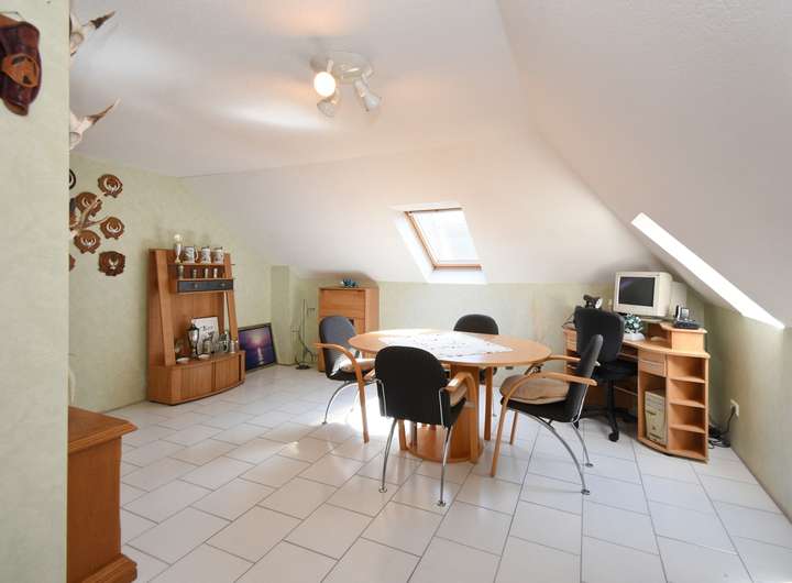 Das Obergeschoss beherbergt zwei zusätzliche Schlafzimmer, sowie ein weiteres Gäste-WC. Der Heizungsraum findet hier auch noch seinen Platz, genauso wie Stauraum für Deko. Das Angebot wird durch ein Gartenhaus und einen Obstgarten abgerundet.