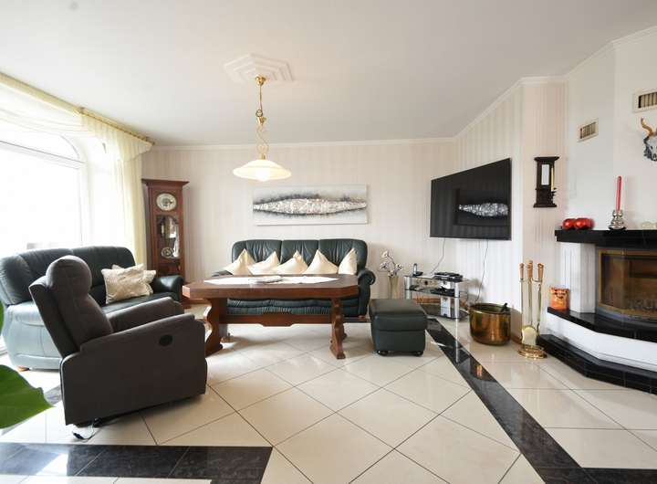 Das Schlafzimmer ist mit einem Masterbad ausgestattet und bietet altersgerechtes Wohnen. Das Erdgeschoss verfügt über ein Gästezimmer sowie einem Gäste-WC mit Dusche. Der Hauswirtschaftsraum mit Zugang zum Garten erleichtert die Alltagsorganisation. Die Doppelgarage mit direktem Zugang zum Haus bietet ausreichend Platz für zwei Fahrzeuge und weiteren Stauraum.