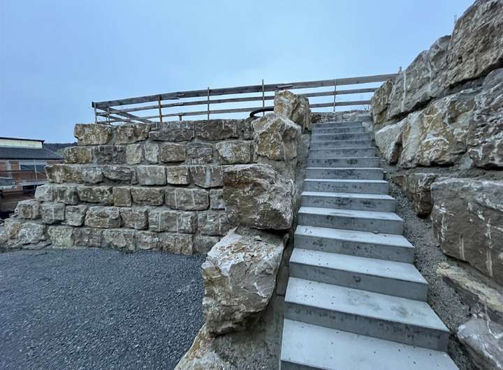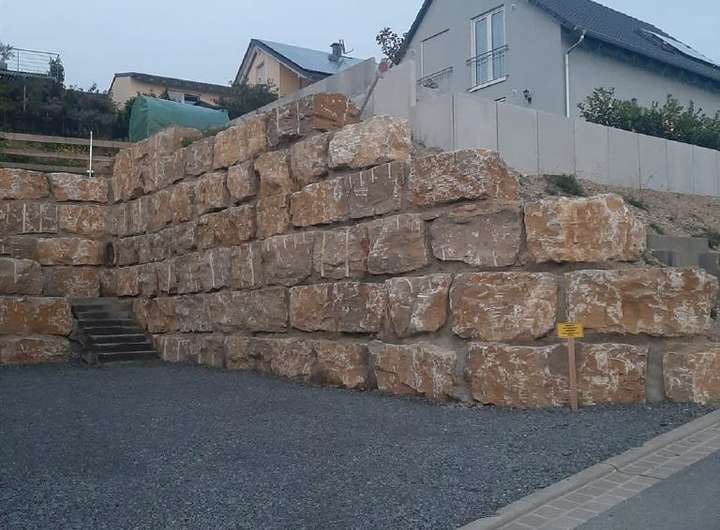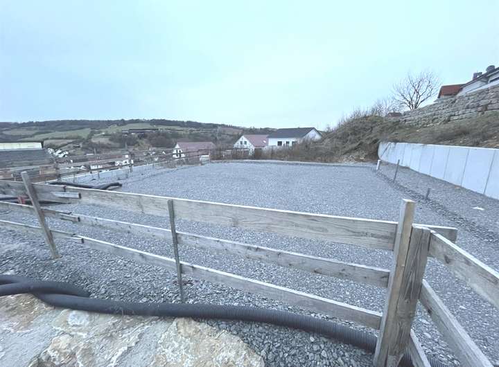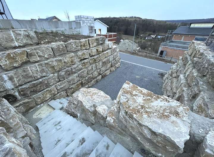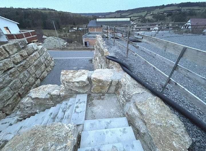 Das Schotterbett für die Bodenplatte sowie eine Natursteinmauer wurden bereits errichtet.