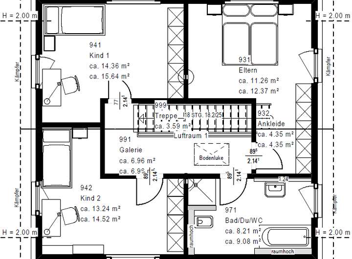 - mehr Raumhöhe (ca. 2,80 m)