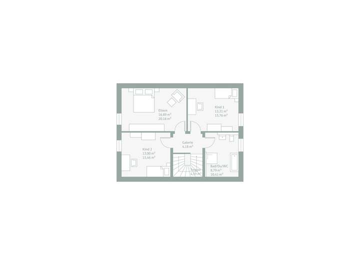 Hauswirtschaftsraum. Im Obergeschoss befinden sich Elternschlafzimmer,