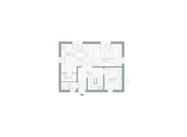 geschoss befinden sich zusätzlich ein Gäste-WC sowie ein großzügiger