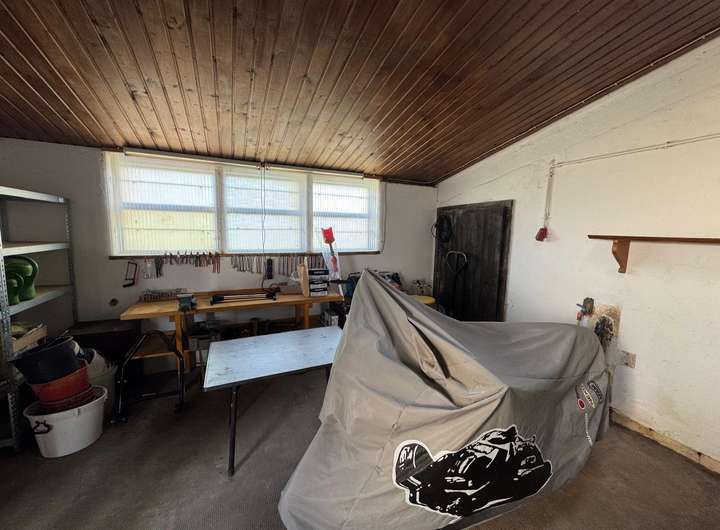 Hauptgebäude: Ein solides Haus, das als Wohnhaus genutzt werden kann oder nach Renovierung auch als Betriebsgebäude dient. Es bietet ausreichend Platz für eine Familie oder als Unterkunft für Mitarbeiter.