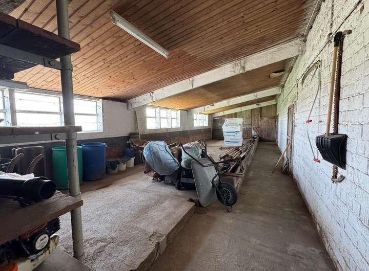Scheune: Eine große Scheune, die sich hervorragend für die Lagerung landwirtschaftlicher Geräte, Heu, Stroh oder als Stallungen für Tiere eignen. Die Scheune ist robust gebaut und bietet vielfältige Nutzungsmöglichkeiten.