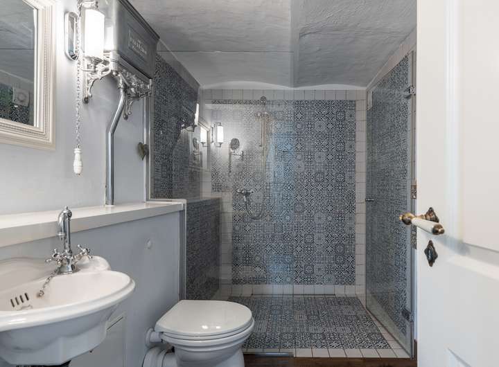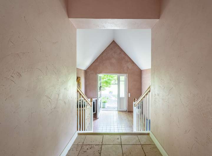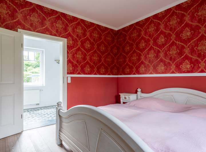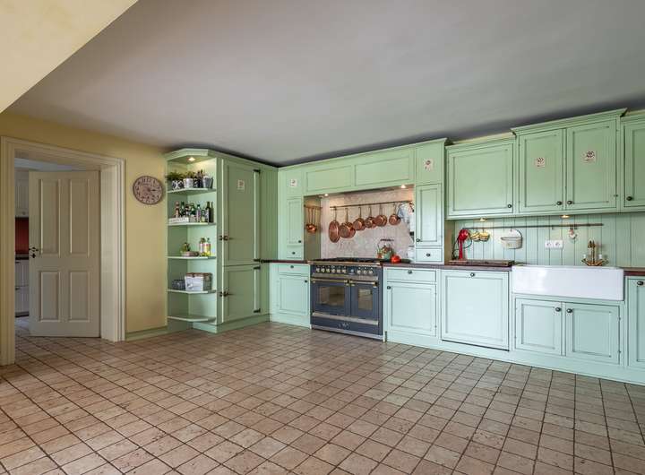 Die stilvolle, große englische Landhausküche mit einem hochwertigen Nostalgieherd von Ascot (Gasherd) bildet das Herzstück des Hauses. Das exklusive Badezimmer mit freistehender Badewanne erlaubt einen ungestörten Blick auf die Weide und lädt zum Entspannen ein. Hochwertige Details wie elegante Zementfliesen von VIA, edles Echtholzparkett im Obergeschoss und schöne Holztüren unterstreichen den besonderen Charakter des Hauses.