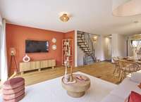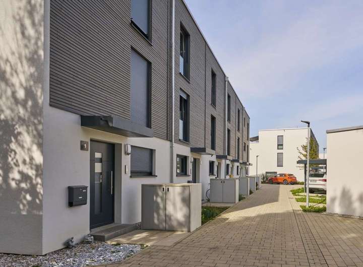Das hier angebotene, ca. 132 m² große und vollausgestattete Reihenhaus mit 6 Zimmern inklusive Galerie bietet viel Platz für Familien oder Arbeiten von zu Hause. Neben dem großzügigen Wohn-/Essbereich verfügt es über drei Schlafzimmer, ein modernes Tageslichtbad, ein Gäste-WC, eine offene Galerie im Dachgeschoss sowie eine nicht einsehbare, nach Süden ausgerichtete Dachterrasse und einen schönen Garten.