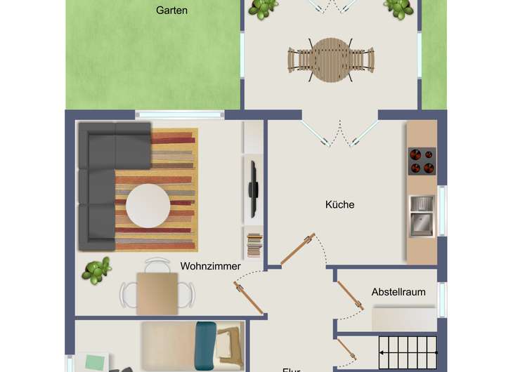 - geschlossene Veranda mit Zugang zum Garten