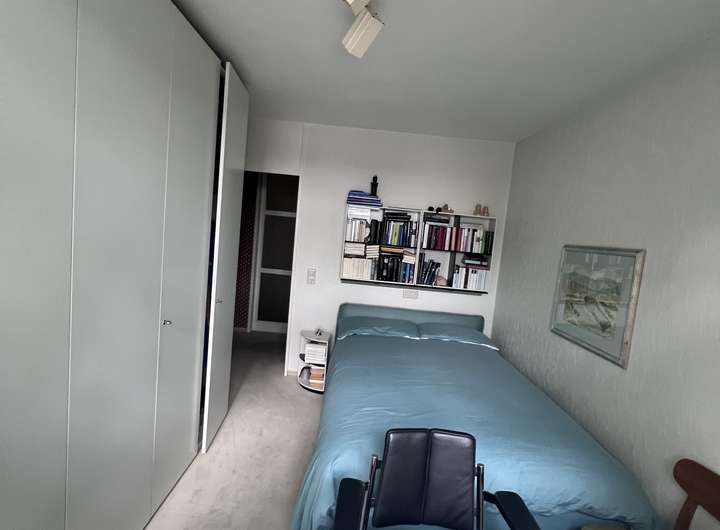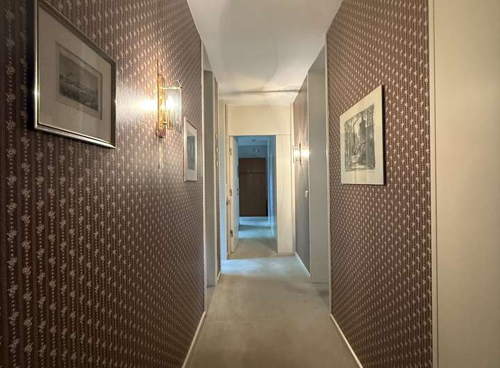 Der Schlafbereich umfasst ein Schlafzimmer, ein Ankleidezimmer und ein Gästezimmer. Es gibt zwei Bäder: Bad 1 mit Badewanne, zwei Waschbecken und Bidet sowie Bad 2 mit Dusche, Waschbecken und Toilette. Integrierte Wandschränke befinden sich im Schlafzimmer sowie im Flur.