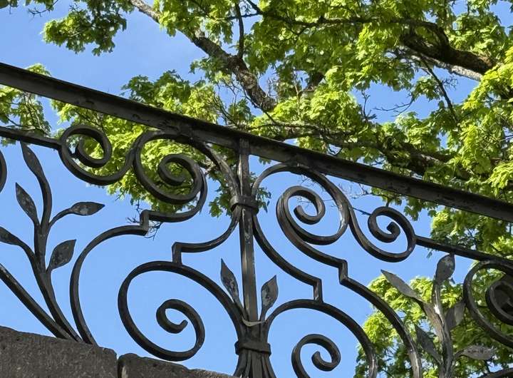 Das Grundstück liegt am unteren Weiher des ehemaligen Schlossparks Hohenbuchau und bietet einen Blick auf die Rheinebene und Rheinhessen.